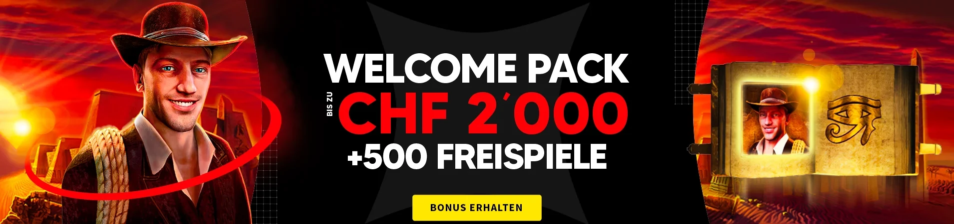⦿ Willkommensbonus bis CHF 2’000 plus 500 Freispiele für Neukunden
