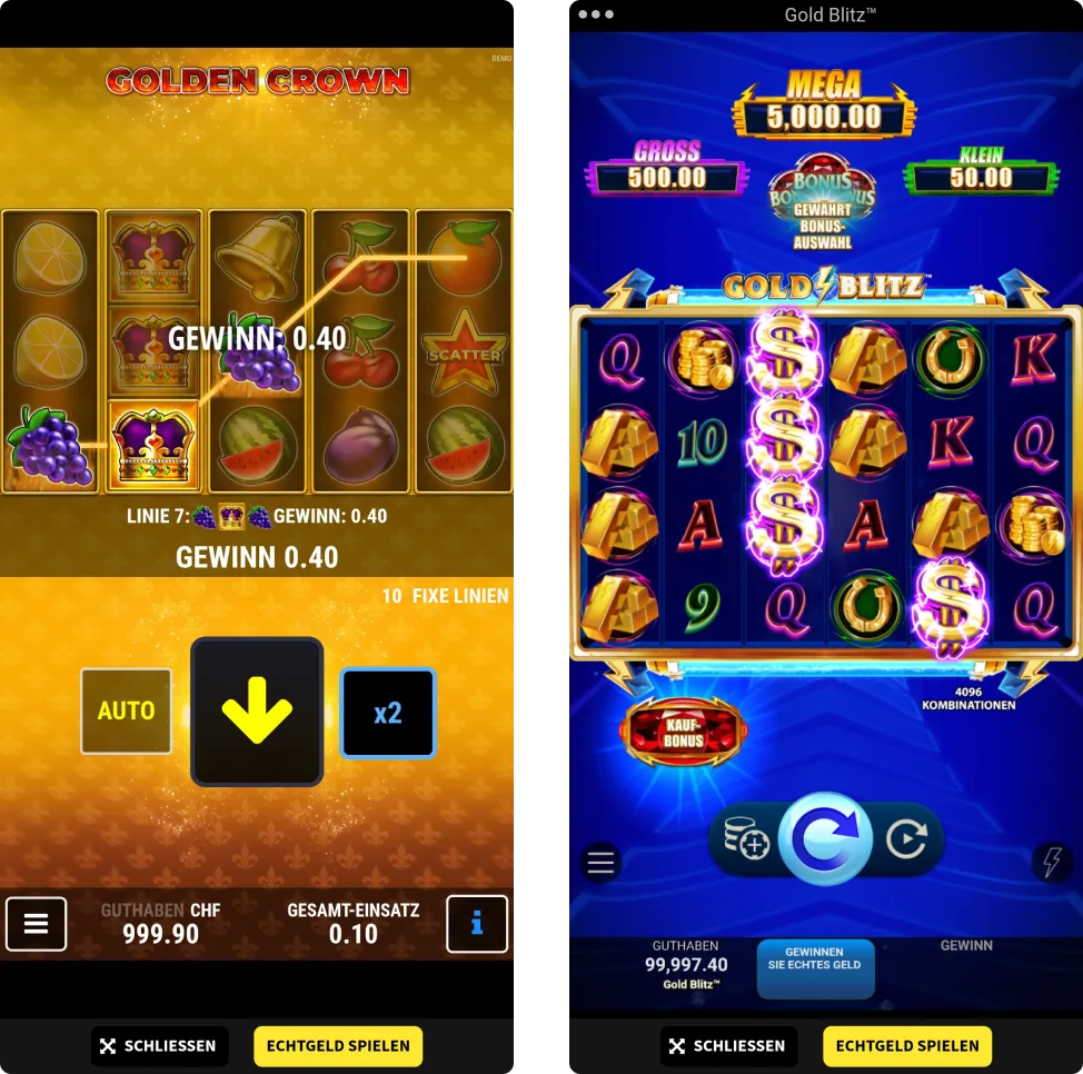 - Alle Spiele: Über 1’000 Slots und Live-Tische funktionieren mobil